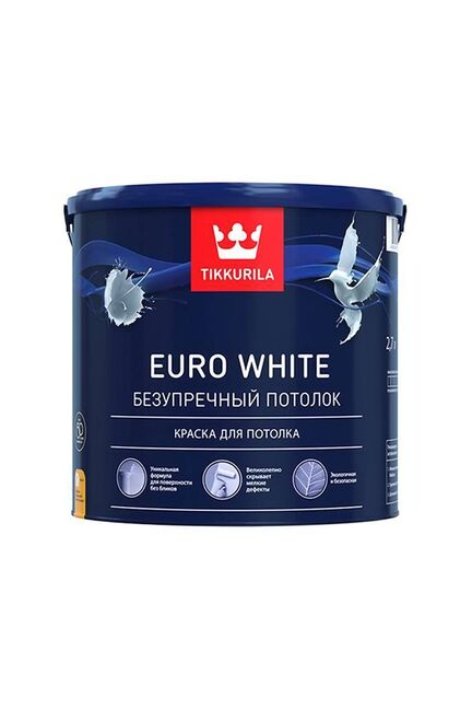 Краска ВД для потолка EURO WHITE белая гл/мат 2,7л Tikkurila
