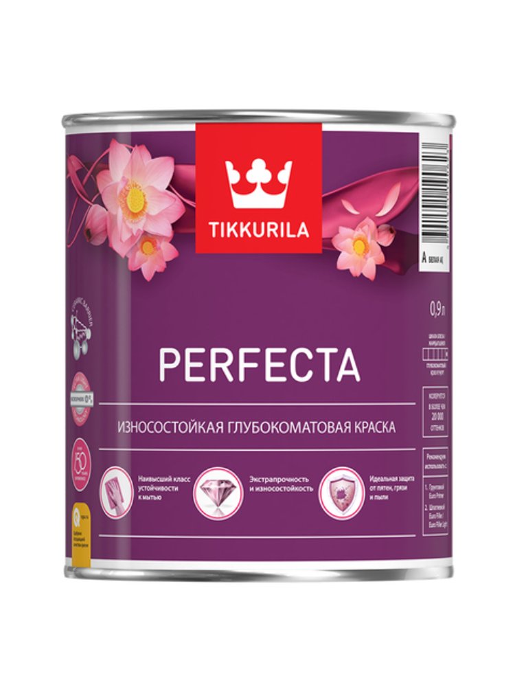 Матовая интерьерная краска, устойчива к мытью, без запаха, быстро сохнет, экологичная и идеально подходит для стен и потолков внутри помещений.