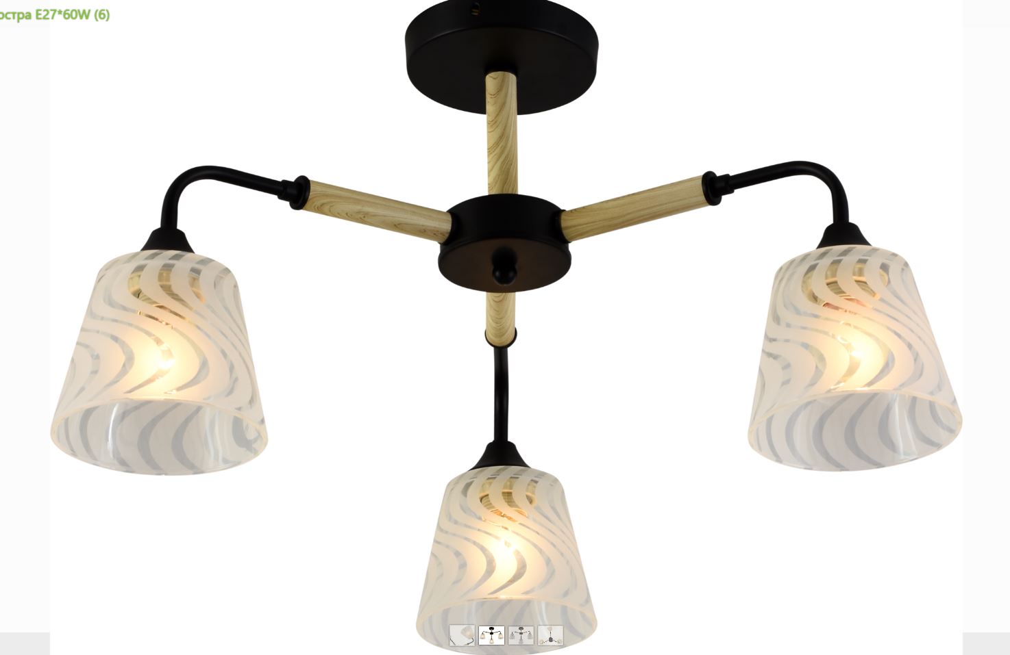 Люстра 3 лампы 10628/3 BK+WOOD черный/дерево E27*60W в Лесозаводск