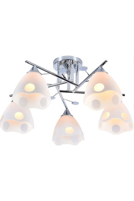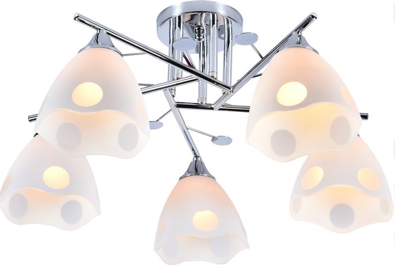 Стильная люстра на 5 ламп E27 до 60 Вт, хромированный корпус, подходит для освещения комнат до 20 м², легко устанавливается и совместима с LED-лампами.