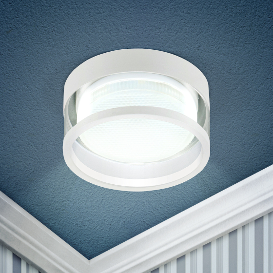 Внешний размер светильника - D90*75mm миллиметров, а монтажный - 70 миллиметров. Степень защиты светильника - IP20, она дает возможность устанавливать его в разных помещениях, кроме тех, где повышена влажность. Для данного светильника подойдет лампа с цоколем GX53 мощностью до 15 Вт.
