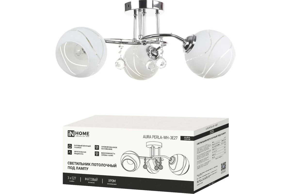 Светильник потолочный под 3 лампы Е27 AURA PERLA белый/хром IN HOME в Лесозаводск