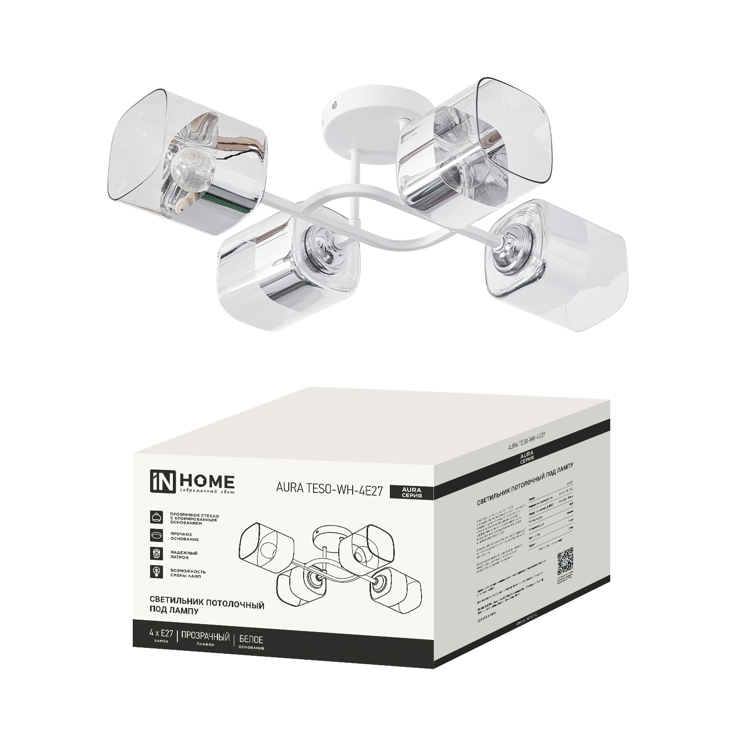 Светильник потолочный под 4 лампы Е27 AURA TESO белый IN HOME в Лесозаводск