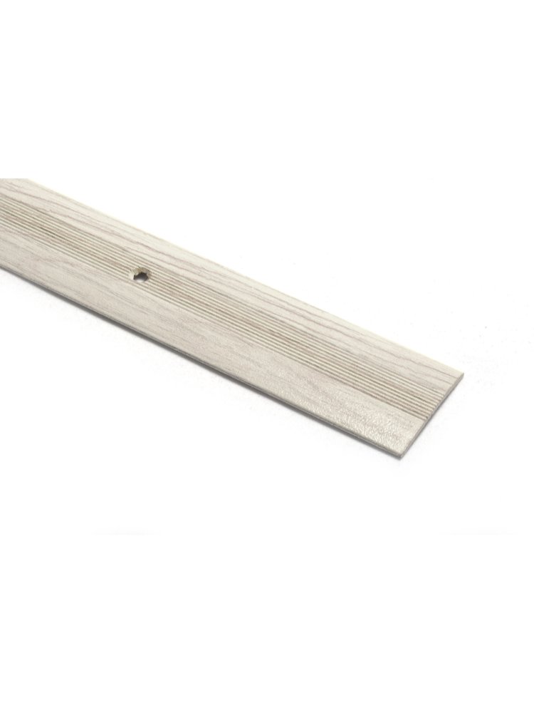 Идеальное решение для аккуратного и прочного оформления стыков между напольными покрытиями — алюминиевый порог в цвете дуб. Надёжно защищает края покрытия от повреждений и обеспечивает плавный перепад уровня пола.