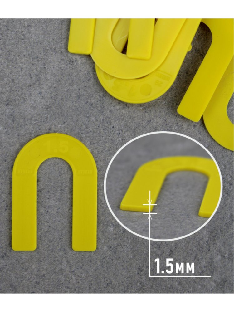 Идеальное решение для точной и аккуратной укладки плитки — многоразовые подковы толщиной 1,5 мм. Обеспечивают идеальные швы между плитками любого формата, упрощая работу мастера и делая результат максимально профессиональным. Незаменимы при укладке керамической плитки, керамогранита и кафеля на стенах и полу.