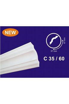 Плинтус для потолка 2 м, 60х29 мм: скрывает неровности, легкий, прочный, подходит для натяжных потолков, легко красится и монтируется.