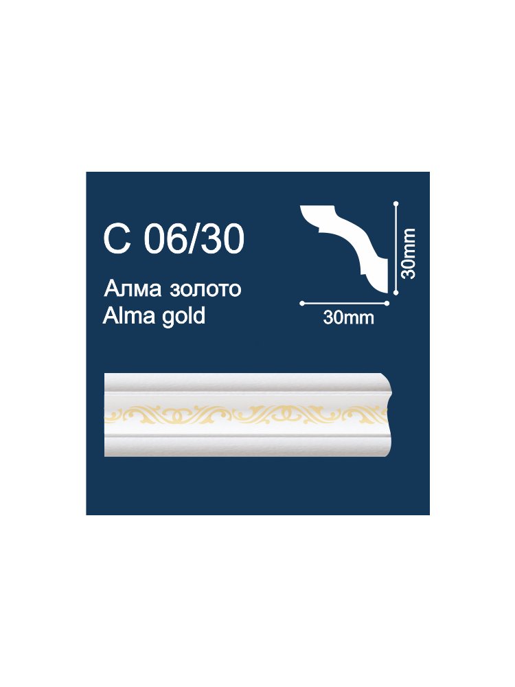 Плинтус потолочный C06/30 (2м/ 30x30мм) с печ. Алма/ Золото (280)