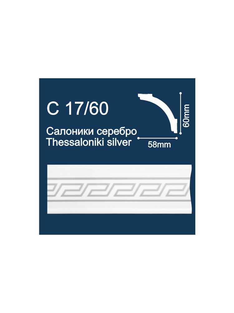 Плинтус потолочный С17/60 (2м/ 60х58мм) с печ. Салоники/ Серебро (96)