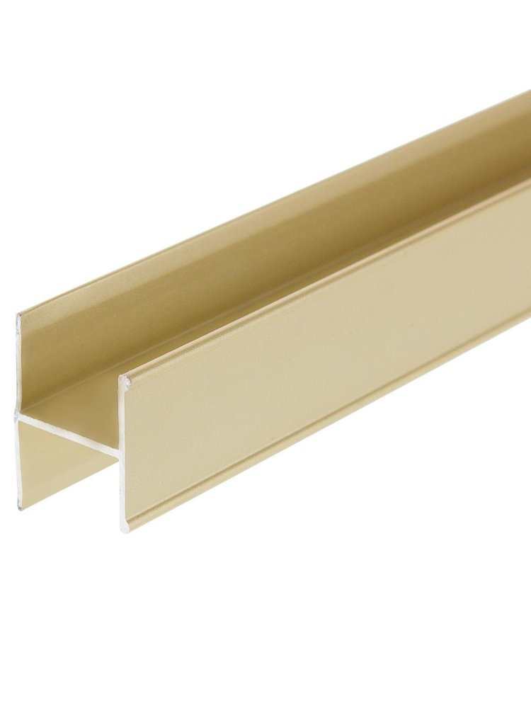 Современное и элегантное решение для аккуратного соединения стыков облицовочных материалов – алюминиевый Н-образный профиль цвета золото придаёт интерьеру изысканный вид и обеспечивает высокую прочность соединений. Применяется при монтаже плитки, панелей ПВХ, МДФ и прочих декоративных покрытий, позволяя добиться идеального стыка даже на длинных поверхностях до 4 метров.