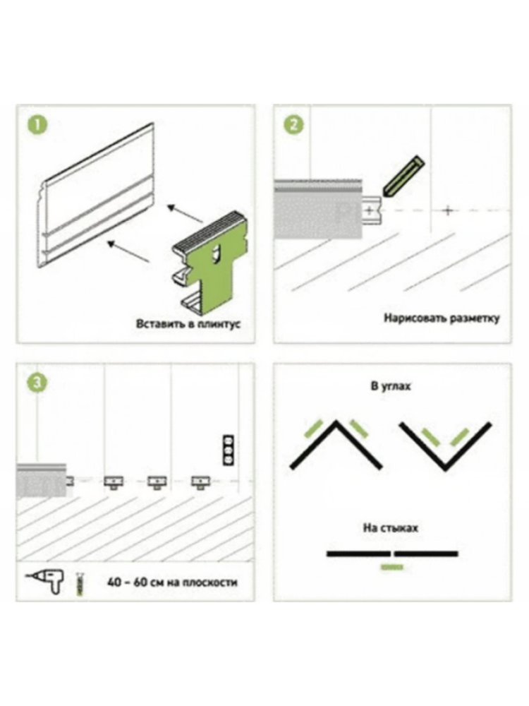 • Защищает плинтус от образования щелей у стены благодаря плотной посадке
