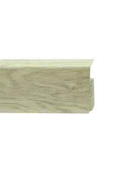 Утонченный и высокий профиль (72 мм) с острыми краями. Благодаря съёмной панели монтаж электрических проводов, покраска стен, оклеивание обоями возможны без демонтажа профилей. Конструкция позволяет монтировать и демонтировать плинтус без использования инструментов. Существует возможность размещения большого количества проводов, в том числе после монтажа. Специальная двухслойная технология: помимо слоя краски, дополнительно покрывается специальным лаком, благодаря чему его покрытие становится однородным, а это дополнительно защищает изделие от разного вида механических повреждений и вредного воздействия лучей УФ. Благодаря эластичному материалу, плинтус идеально прилегает даже к неровностям стен и полов. Плинтус 72 мм длиной 2,2 м, влагостойкий, с имитацией дуба, защищает стены и скрывает кабели, подходит для жилых и коммерческих интерьеров.
