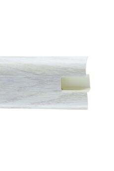 Утонченный и высокий профиль (58 мм) с острыми краями. Благодаря съёмной панели монтаж электрических проводов, покраска стен, оклеивание обоями возможны без демонтажа профилей. Конструкция позволяет монтировать и демонтировать плинтус без использования инструментов. Существует возможность размещения большого количества проводов, в том числе после монтажа. Специальная двухслойная технология: помимо слоя краски, дополнительно покрывается специальным лаком, благодаря чему его покрытие становится однородным, а это дополнительно защищает изделие от разного вида механических повреждений и вредного воздействия лучей УФ. Благодаря эластичному материалу, плинтус идеально прилегает даже к неровностям стен и полов. Плинтус 58 мм, длина 2,5 м, с кабель-каналом, устойчив к влаге и царапинам, легко монтируется, подходит для любых напольных покрытий.