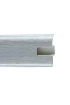 Утонченный и высокий профиль (58 мм) с острыми краями. Благодаря съёмной панели монтаж электрических проводов, покраска стен, оклеивание обоями возможны без демонтажа профилей. Конструкция позволяет монтировать и демонтировать плинтус без использования инструментов. Существует возможность размещения большого количества проводов, в том числе после монтажа. Специальная двухслойная технология: помимо слоя краски, дополнительно покрывается специальным лаком, благодаря чему его покрытие становится однородным, а это дополнительно защищает изделие от разного вида механических повреждений и вредного воздействия лучей УФ. Благодаря эластичному материалу, плинтус идеально прилегает даже к неровностям стен и полов. Плинтус Wimar Дуб Аргенто 58 мм, длиной 2,5 м из МДФ с износостойким покрытием. Стильный дизайн, простая установка, защита стыков пола и стен.