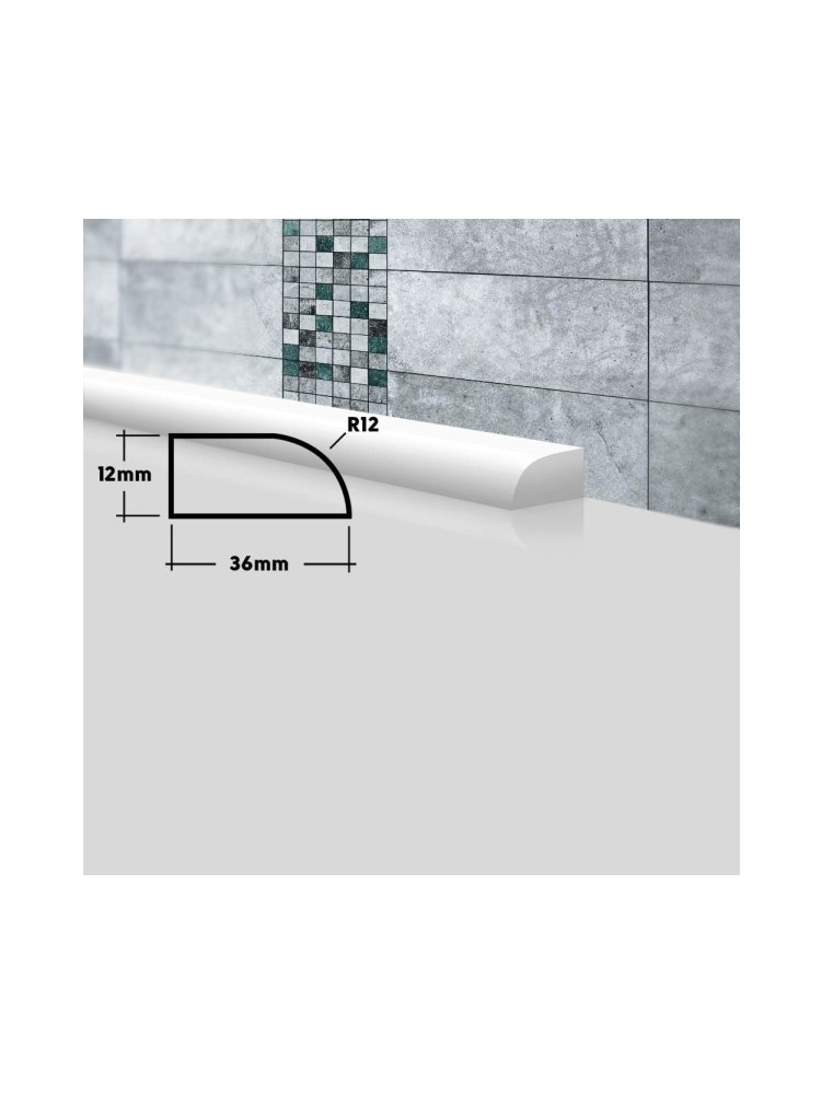 Служит для скрытия стыков между раковиной или ванной и стеной. Акриловый камень, из которого сделаны бордюры, очень плотный и прочный материал. В нем нет пор, поэтому в нём не заводятся плесень и грибок. Он прост в уходе, не боится влажности и бытовой химии, не меняет свой цвет и форму. Для распила потребуется ножовка по металлу или торцовочная пила с диском по дереву или алюминию, монтаж производится на герметик или водостойкий клей. Акриловый плинтус-бордюр 12×36×1800 мм, белый: влагостойкий, прочный, легко монтируется, идеально маскирует стыки и подходит для любых помещений.