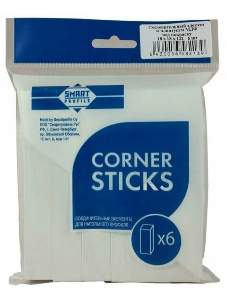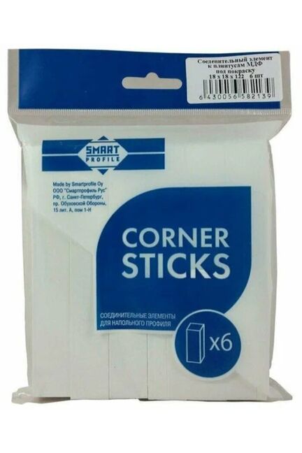 Соединительный элемент к плинтусу МДФ. Предназначен для избежания неровных косых срезов при монтаже плинтуса МДФ. Прочный соединитель для МДФ плинтуса 18×18 мм, фиксирует стыки, обеспечивает аккуратную отделку, быстро и просто монтируется, в упаковке 6 штук.