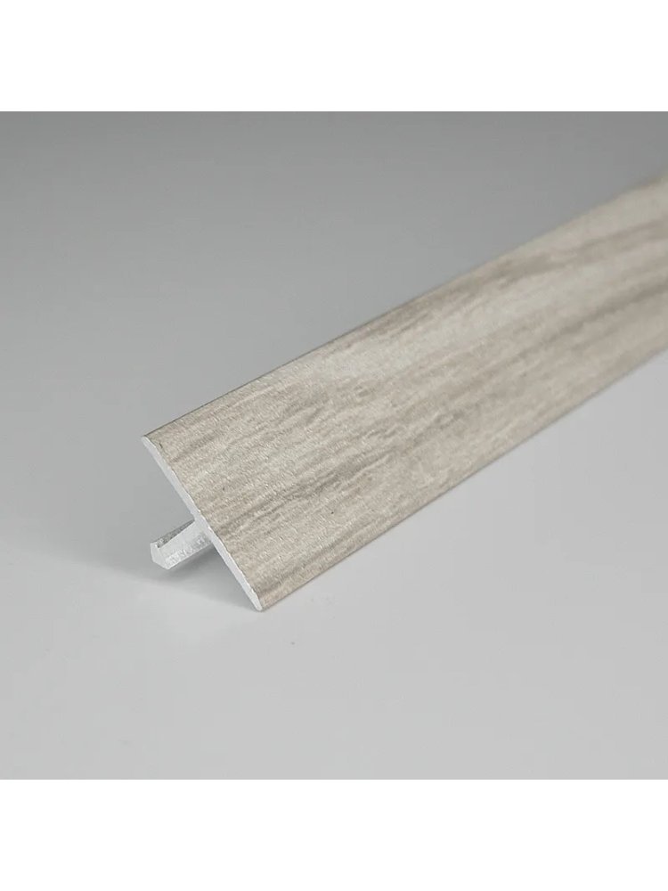 Идеальное решение для аккуратного и прочного оформления стыков напольных покрытий: Т-образный алюминиевый порог с ламинированным покрытием цвета "Ларче грей" гармонично впишется в любой современный интерьер и создаст завершённый вид пола.