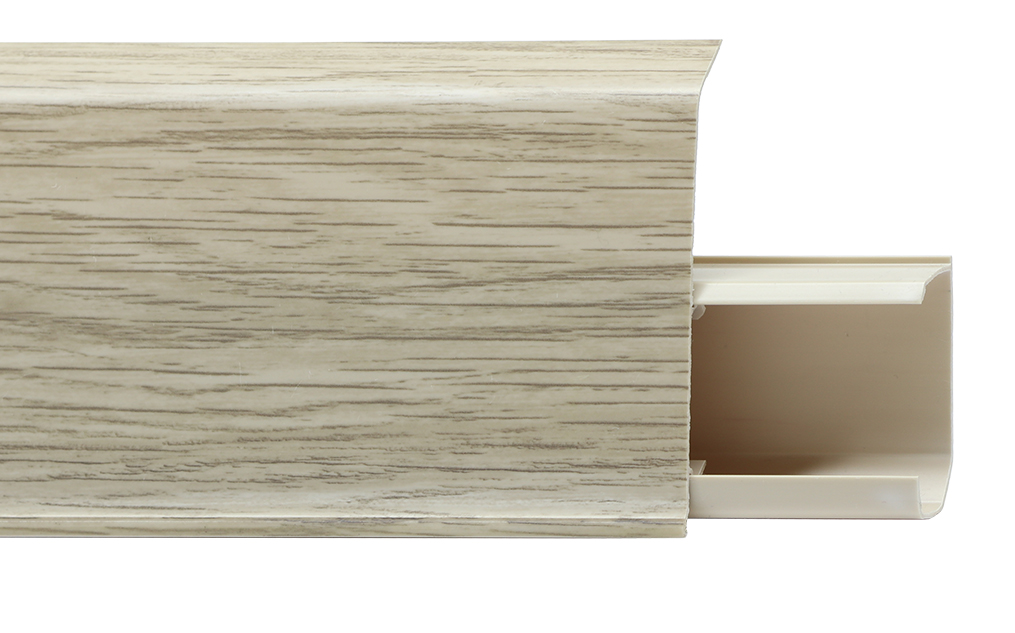 Утонченный и высокий профиль (72 мм) с острыми краями. Благодаря съёмной панели монтаж электрических проводов, покраска стен, оклеивание обоями возможны без демонтажа профилей. Конструкция позволяет монтировать и демонтировать плинтус без использования инструментов. Существует возможность размещения большого количества проводов, в том числе после монтажа. Специальная двухслойная технология: помимо слоя краски, дополнительно покрывается специальным лаком, благодаря чему его покрытие становится однородным, а это дополнительно защищает изделие от разного вида механических повреждений и вредного воздействия лучей УФ. Благодаря эластичному материалу, плинтус идеально прилегает даже к неровностям стен и полов. Соединитель плинтуса 72 мм, цвет дуб шимо, быстрая установка, надёжное соединение, упаковка 2 шт, идеален для аккуратного монтажа.