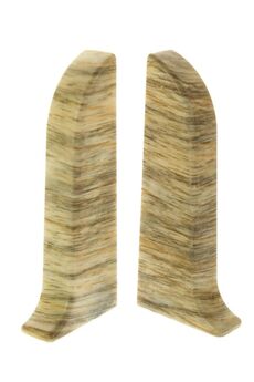 Утонченный и высокий профиль (58 мм) с острыми краями. Благодаря съёмной панели монтаж электрических проводов, покраска стен, оклеивание обоями возможны без демонтажа профилей. Конструкция позволяет монтировать и демонтировать плинтус без использования инструментов. Существует возможность размещения большого количества проводов, в том числе после монтажа. Специальная двухслойная технология: помимо слоя краски, дополнительно покрывается специальным лаком, благодаря чему его покрытие становится однородным, а это дополнительно защищает изделие от разного вида механических повреждений и вредного воздействия лучей УФ. Благодаря эластичному материалу, плинтус идеально прилегает даже к неровностям стен и полов. Заглушки для плинтуса 58 мм, цвет "Дуб Эллора", износостойкий пластик, легко устанавливаются, маскируют срезы, комплект 2 шт.