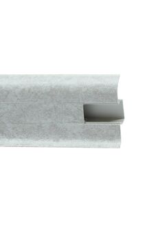 Утонченный и высокий профиль (58 мм) с острыми краями. Благодаря съёмной панели монтаж электрических проводов, покраска стен, оклеивание обоями возможны без демонтажа профилей. Конструкция позволяет монтировать и демонтировать плинтус без использования инструментов. Существует возможность размещения большого количества проводов, в том числе после монтажа. Специальная двухслойная технология: помимо слоя краски, дополнительно покрывается специальным лаком, благодаря чему его покрытие становится однородным, а это дополнительно защищает изделие от разного вида механических повреждений и вредного воздействия лучей УФ. Благодаря эластичному материалу, плинтус идеально прилегает даже к неровностям стен и полов. Лёгкая установка, эстетичный вид и защита углов от повреждений. Для оформления и соединения плинтусов 58мм в светлом мраморном оттенке.