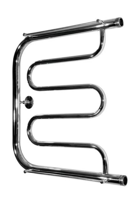 Водяное боковое подключение, Размер подключения 1", 4 вставки, Sотапл. пом.<2,85м², с полочкой Компактный полотенцесушитель 60×60 см из стали, устойчивый к коррозии, быстро и равномерно сушит текстиль, легко монтируется и обслуживается.