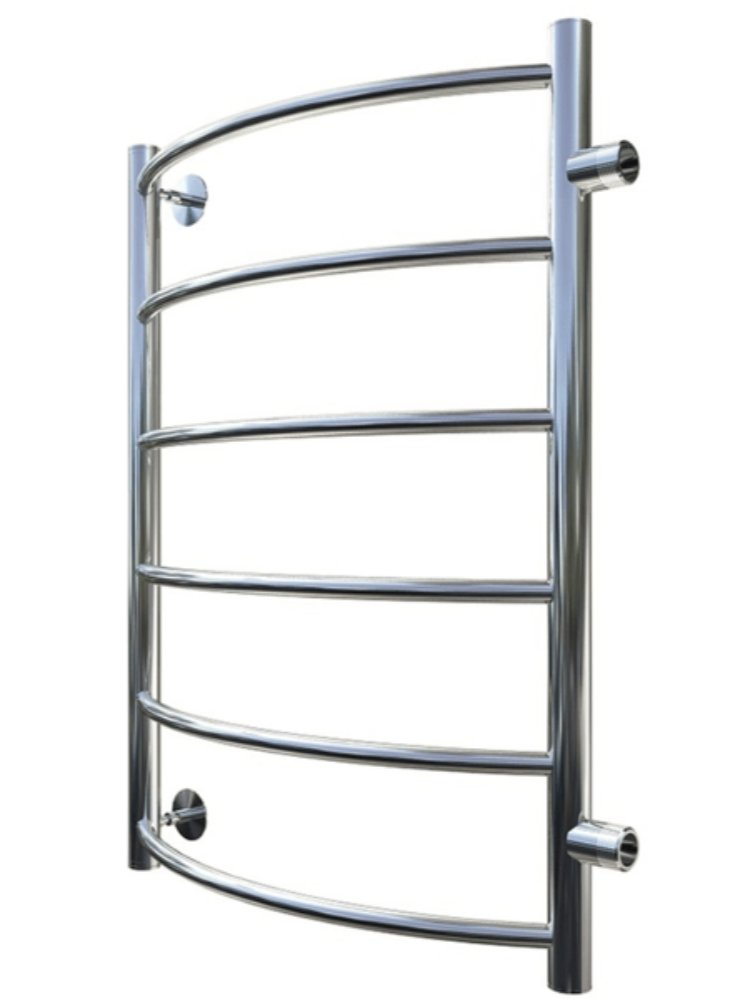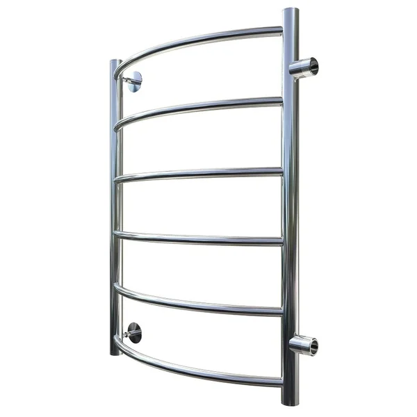 Полотенцесушитель типа "лесенка" с боковым подключением дуговидными вставками с полкой. Серия 1 предполагает равномерное размещение вставок. Полотенцесушитель имеет наружнюю резьбу на боковых выводах. В комплекте имеются заглушка с краном маевского и телескопические держатели. Водяной полотенцесушитель 50×80×40 см из нержавеющей стали, быстро сушит вещи, легко монтируется и обеспечивает защиту от влаги и плесени.