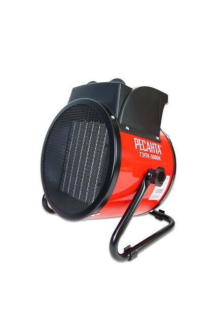 Тепловая пушка электрическая Ресанта ТЭПК-5000K характеризуется наличием мощного вентилятора, производительность которого составляет 400 м³/ч. Таким образом, на осуществление поставленных задач прибору потребуется минимум времени. Благодаря прочной подставке в основании обусловлена повышенная устойчивость тепловой пушки на различных поверхностях. В основу модели Ресанта ТЭПК-5000K положен керамический нагревательный элемент, который отличается высокой износоустойчивостью. На корпус прибора нанесено особое покрытие, предупреждающее появление коррозии и ржавчины. Пушка 5 кВт с керамическим нагревателем, защищена от перегрева, обогревает до 50 м², три режима работы, устойчива, для стройки и гаража.