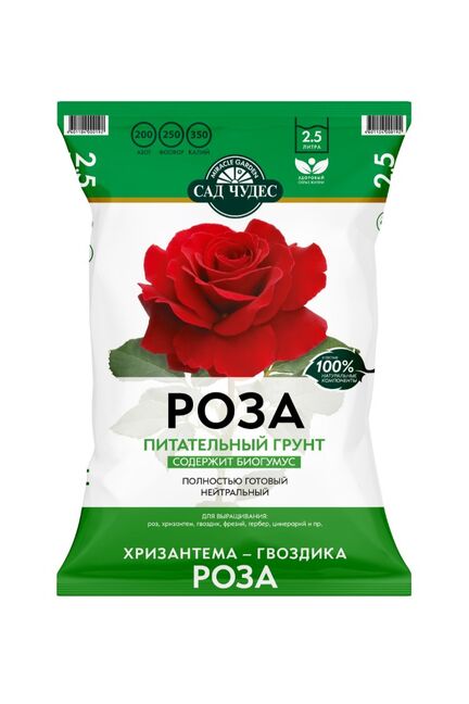 Питательный нейтральный грунт 2,5 л для роз и декоративных цветов с торфом, песком и перлитом — готов к посадке и обеспечивает здоровый рост и цветение.