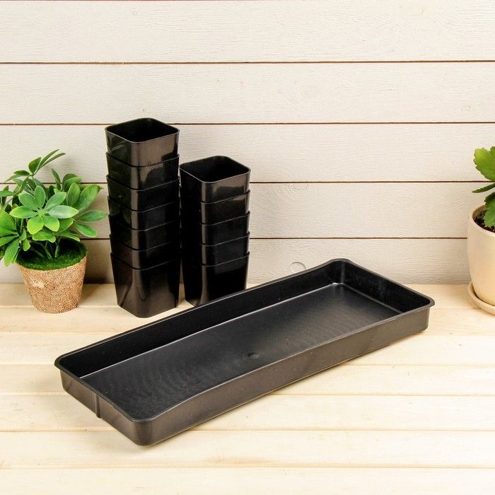Прочный пластиковый поддон, защищает от протечек и грязи, оптимален для размещения стаканов с рассадой и легкой уборки рабочей зоны.