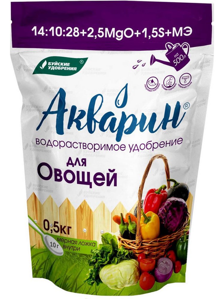 - Универсален: применим для томатов, огурцов, перца, капусты, баклажанов и других овощей