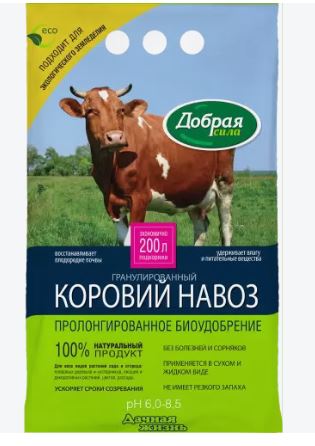 Удобрение Добрая сила Коровий навоз гранулы 2 кг в Лесозаводск