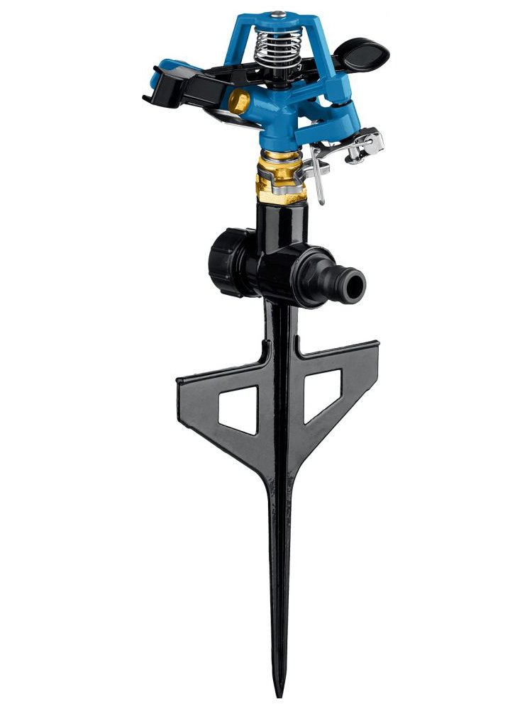 Для равномерного полива газона и сада до 490 м². Лёгкая установка на пике, надёжно работает с любым садовым шлангом.