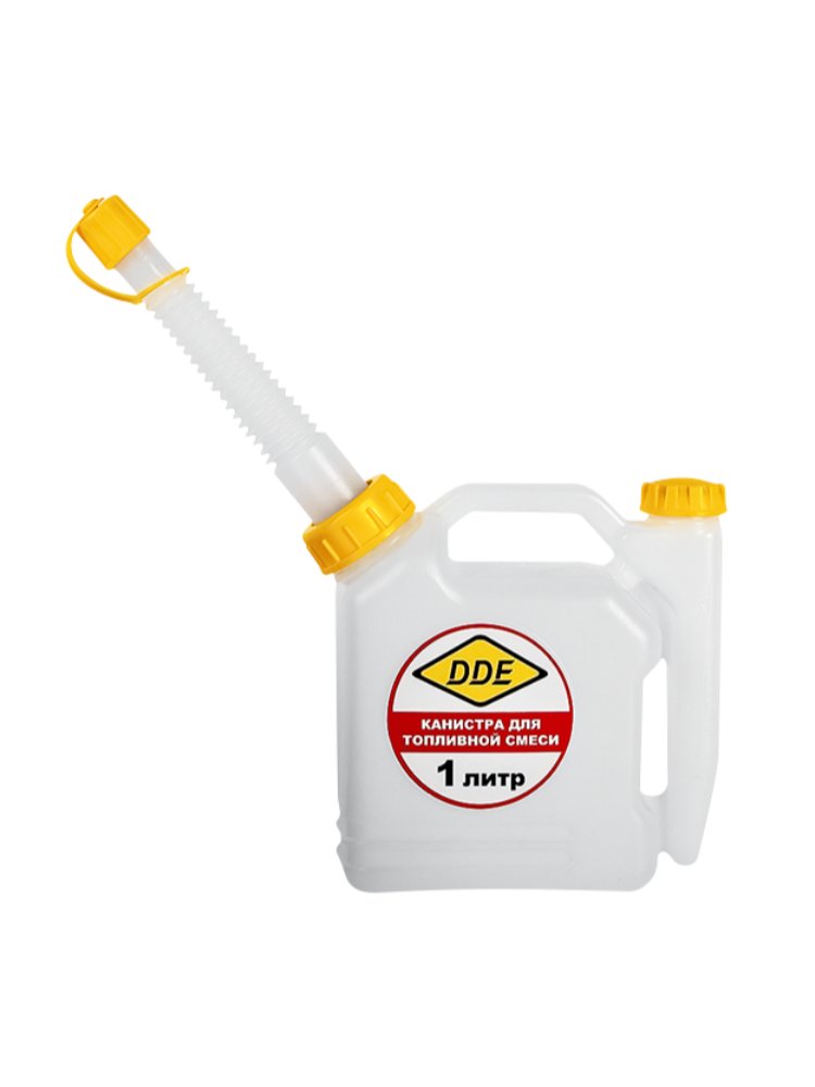 Специальная канистра объемом 1 литр с удобной заливочной трубкой. Безопасно и грамотно смешивайте бензин и масло для вашего строительного, садового или хозяйственного инструмента, что важно для правильной работы двигателя и долгого срока службы техники.