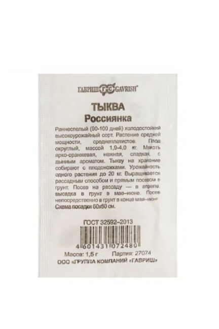 Семена Тыква Россиянка 1,5гр. б/п Уд. с. Гавриш в Лесозаводск