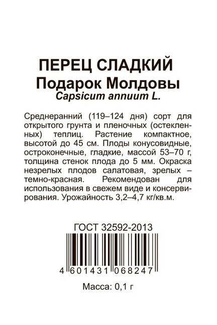 Семена Перец Подарок Молдовы 0,1гр. б/п Гавриш