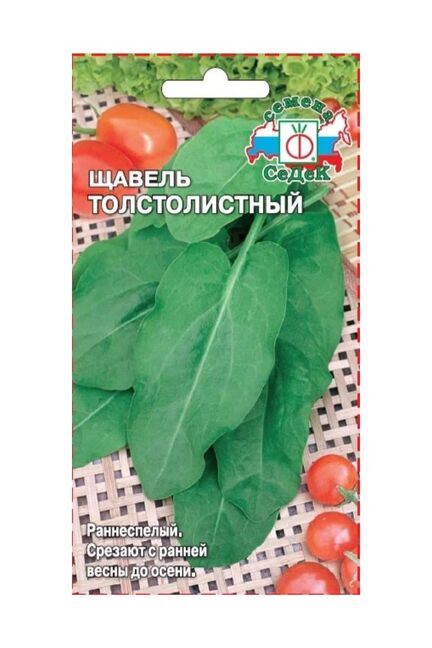Семена щавеля толстолистного 0,5 г от СеДеК. Раннеспелый сорт, урожай через 40-45 дней. Устойчив к болезням, неприхотлив, идеален для сада и кулинарии.