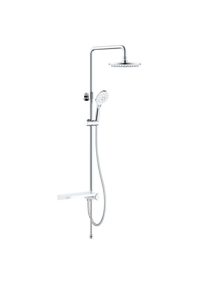 Откройте для себя комфорт и стиль в каждой детали вашей ванной: современный душевой комплект с верхней лейкой и удобной полкой подарит удовольствие от водных процедур и идеально впишется в интерьер.