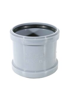 Двухраструбная муфта 110 мм из прочного полипропилена, устойчива к коррозии и температуре, для герметичного соединения канализационных труб.