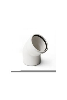 Малошумный белый отвод 50 мм, угол 45°, снижает шум труб, прост в установке, устойчив к износу и химии. Идеален для скрытых и открытых коммуникаций.
