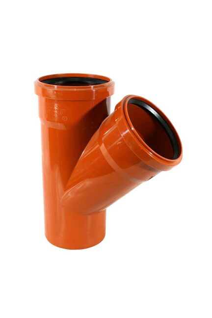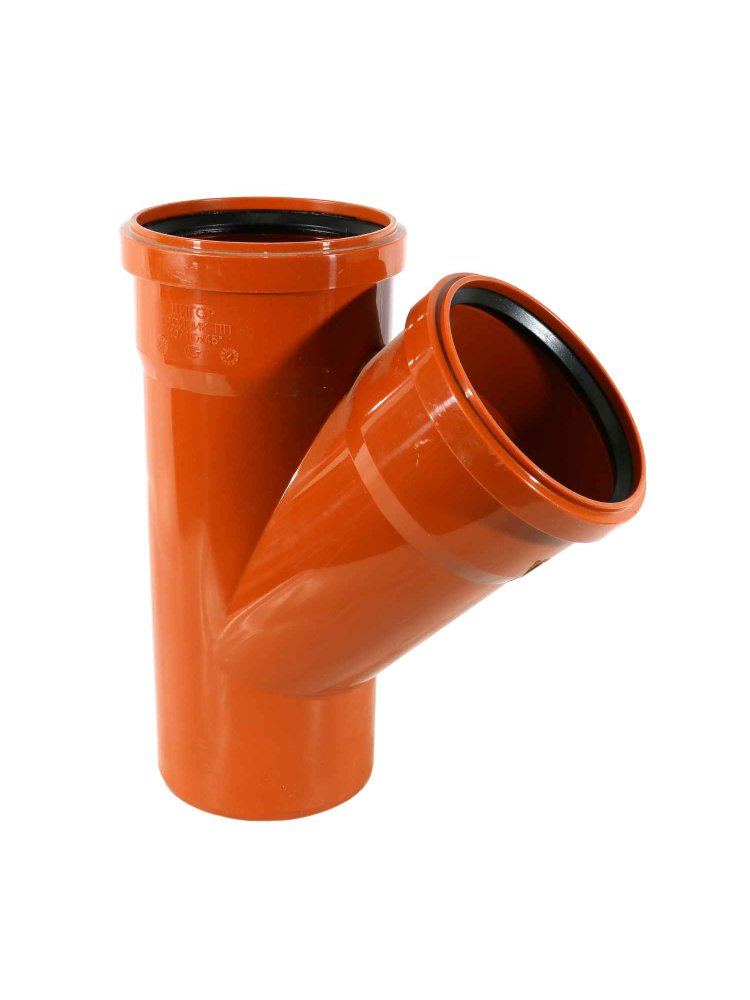 Тройник Цвет кирпичный Область применения снаружи помещения Материал полипропилен Диаметр 110 х110х110 мм Угол 45 градус Толщина стенки 3.2 мм Наличие уплотнительного кольца есть Срок эксплуатации 50 лет Прочный полипропиленовый тройник Ду 110/110, угол 45°, для надёжного соединения и разводки канализационных пластиковых труб.