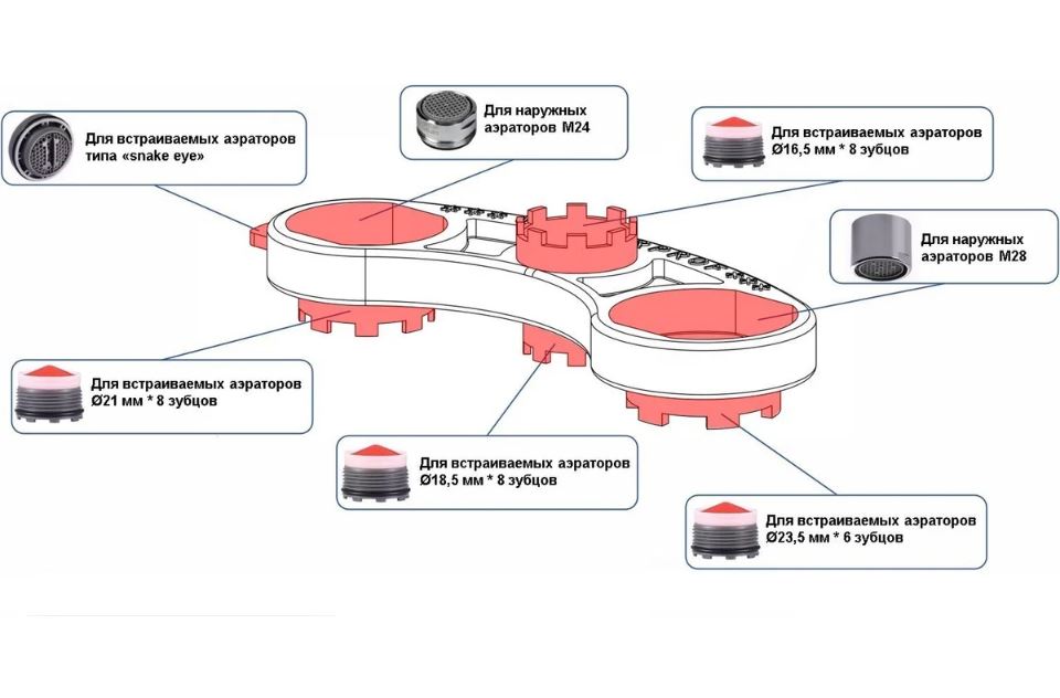 Семь самых востребованных разъемов соответствующих следующим аэраторам: