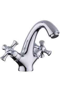 Гарантийный срок: 5 лет Материал: латунь Двуручный смеситель из латуни c аэратором, устойчивый к коррозии, позволяет точно регулировать напор и температуру воды для установки на умывальник.