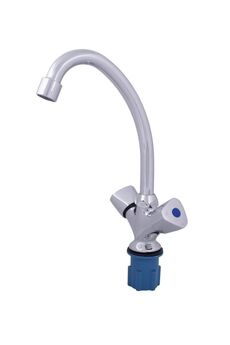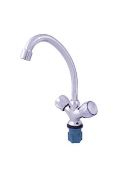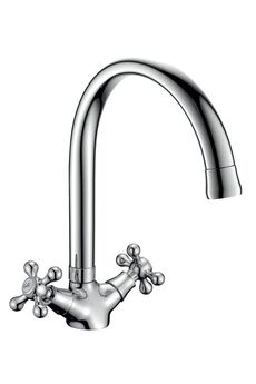 Двухвентильный смеситель с латунным корпусом, хромированным покрытием и поворотным изливом — точный контроль подачи воды для вашей кухни.