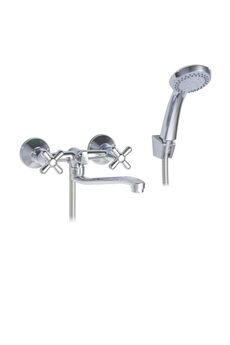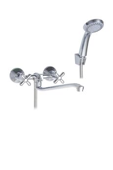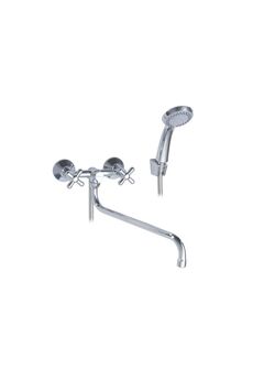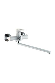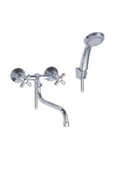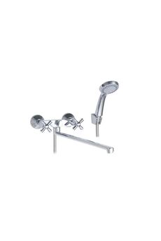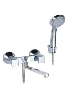 Двуручный смеситель с изливом 32 см, керамическими кран-буксами и настенным монтажом для ванны и душа — надежно, удобно, стильно.