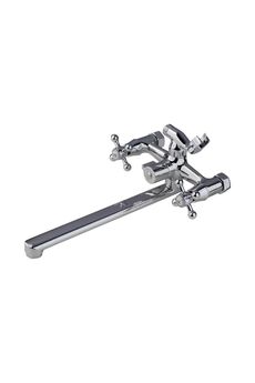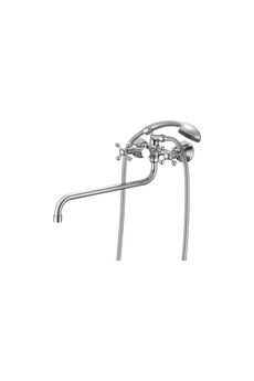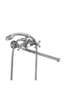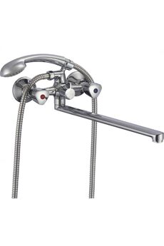 Двуручный смеситель с длинным изливом 35 см для ванны, простое управление, прочное хромированное покрытие, надёжность и удобство монтажа.