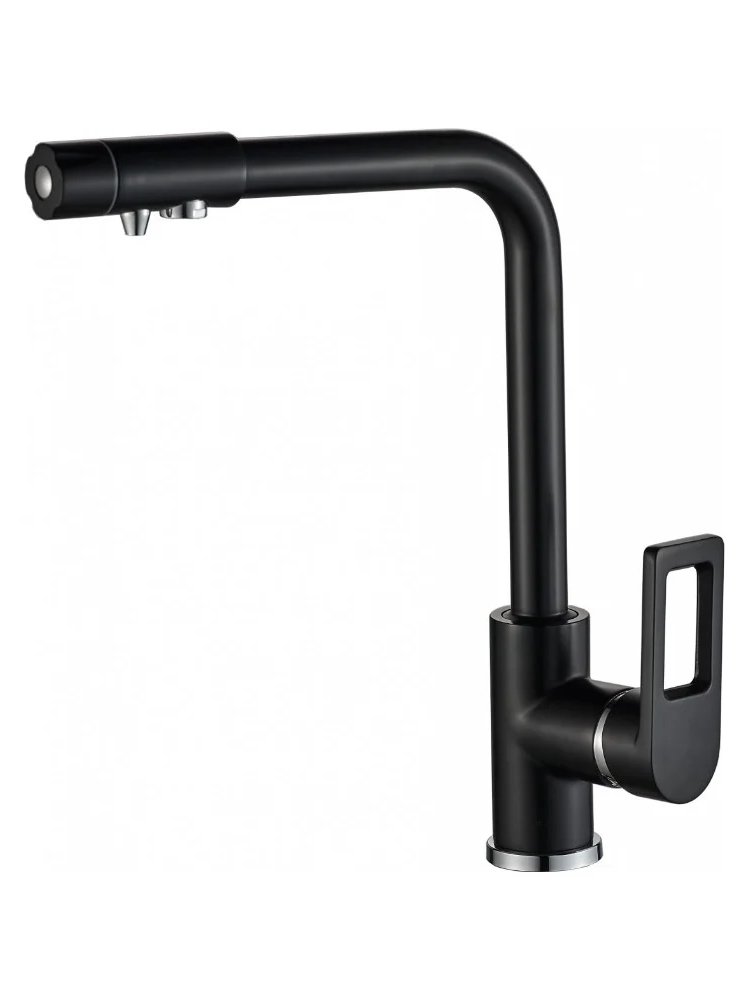 Стильный и высокотехнологичный смеситель для кухни с дополнительным каналом для фильтрованной воды — решение для комфортного и безопасного пользования водой на современной кухне. Благодаря однорычажному управлению и прочному корпусу с матовым черным покрытием, он идеально подходит для интерьеров с упором на дизайн и функциональность.