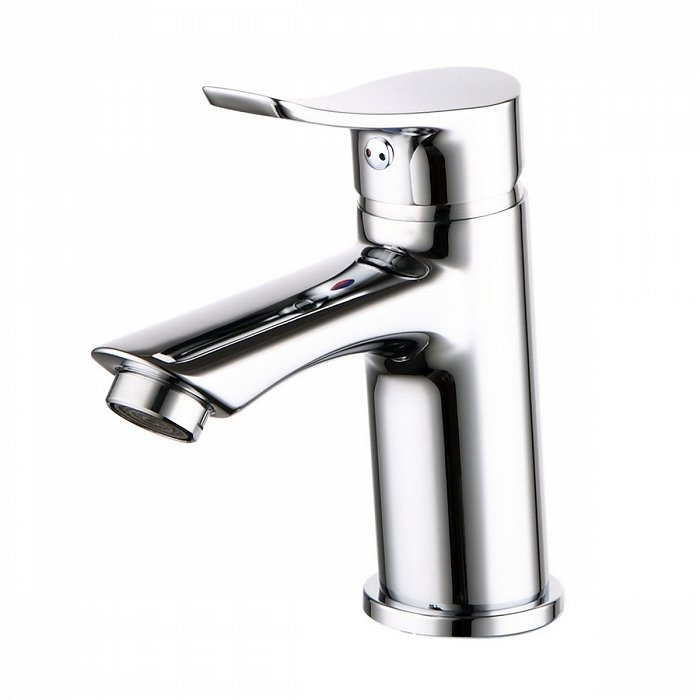 Современный однорычажный смеситель из латуни с керамическим картриджем и хромированным покрытием для умывальника. Гибкая подводка в комплекте.