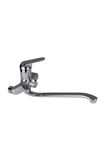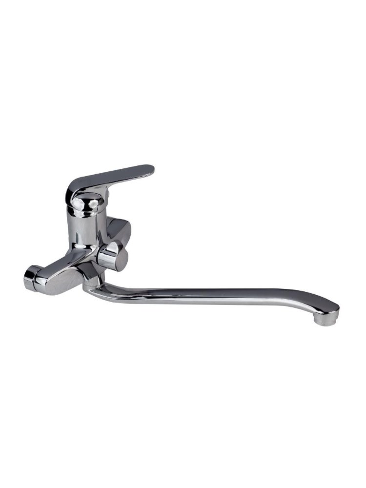 Материал латунь, картридж: 40мм Покрытие: хром/никель Излив: плоский S-обр., длина 35см Однорычажный смеситель для ванны и душа: прочная латунь, антикоррозийное покрытие, удобное управление и долговечность эксплуатации.