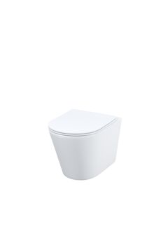 Подвесной компактный унитаз 490×370×340 мм с безободковой чашей, горизонтальным выпуском и легким уходом для современных санузлов.