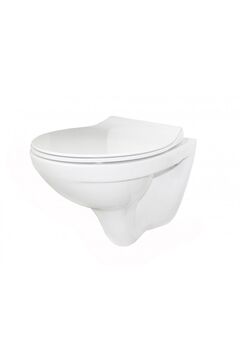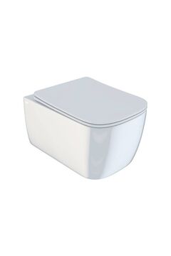 Подвесной унитаз 55×35×37,5 см безободковый, белый, устойчив к загрязнениям, универсальный монтаж, прост в уходе и экономит пространство.