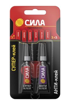 Супер-клей СИЛА, идеально подходит для быстрого и эффективного ремонта различных предметов мебели, интерьера и т.д. Накрепко схватывает дерево, резину, стекло, фарфор и пластик, при этом супер клеи экономично расходуются и высыхают за несколько секунд. * 100% цианоакрилат - высокая концентрация клеящих ингредиентов, обеспечивает крепкое, мгновенное соединение частей различных предметов. * Удобный само вскрывающийся тюбик - при накручивания колпачка, обеспечивает быстрое и аккуратное использование. * Предусмотрена перфорация "ёлочка" под тюбиком для извлечения его быстро и без усилий. Моментальное склеивание